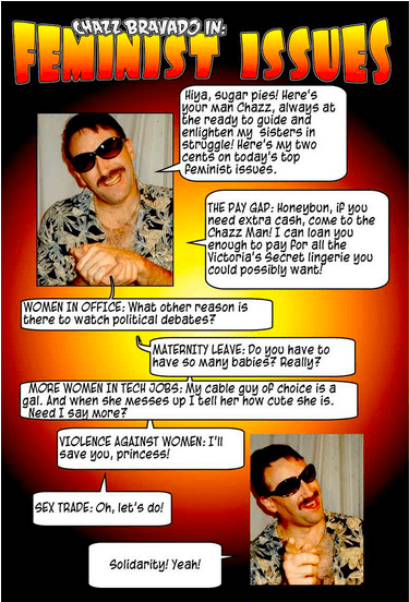 Comics Chazz Bravado: Feminist Issues Share this: Click to share on Facebook (Opens in new window) Facebook Click to share on X (Opens in new window) X Click to email a link to a friend (Opens in new window) Email Click to print (Opens in new window) Print Click to share on Reddit (Opens in new window) Reddit Like Loading... Related