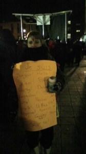I asked her what his sign said, and she replied, “It says, ‘Je suis Musulman.'”