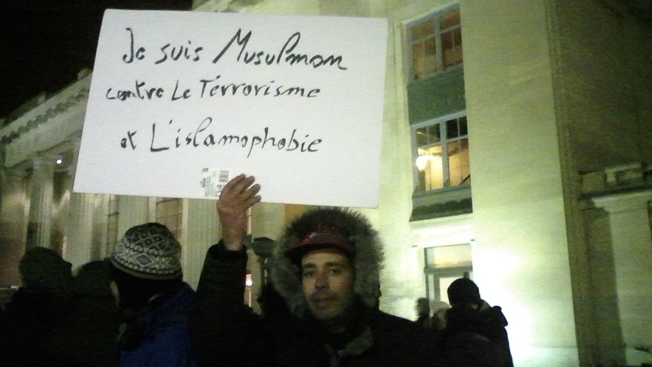 I asked her what his sign said, and she replied, “It says, ‘Je suis Musulman.'”