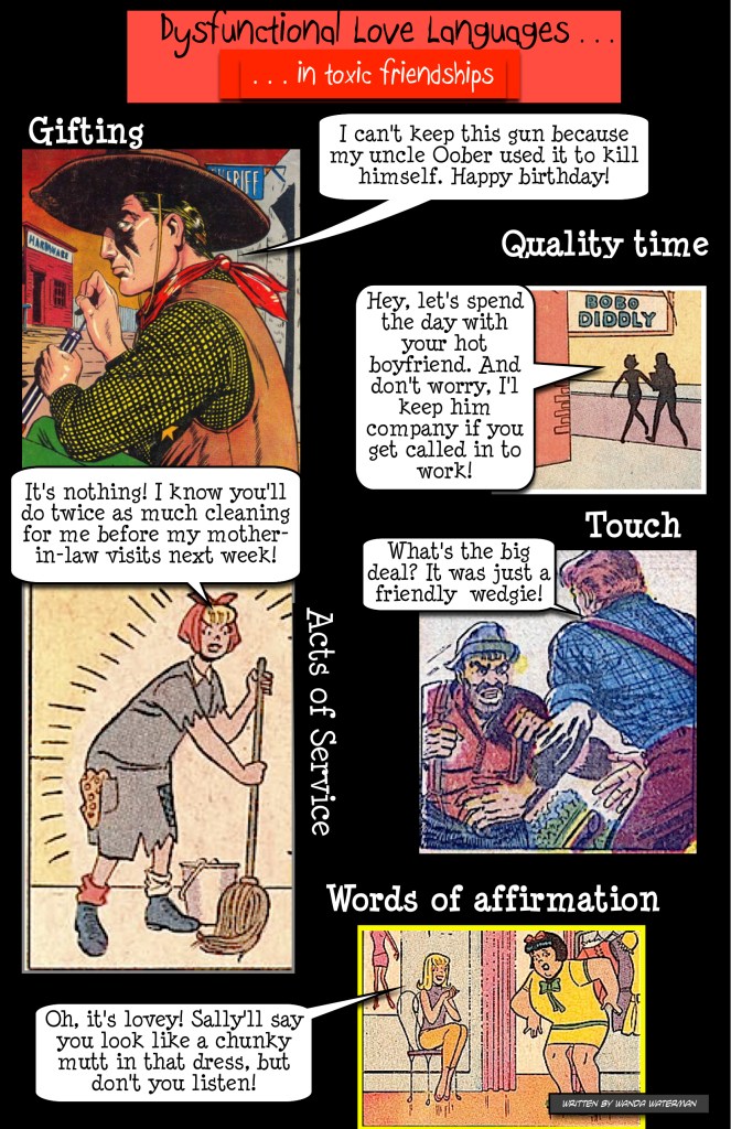 Comics Love Languages in Toxic Friendships (comic) Share this: Click to share on Facebook (Opens in new window) Facebook Click to share on X (Opens in new window) X Click to email a link to a friend (Opens in new window) Email Click to print (Opens in new window) Print Click to share on Reddit (Opens in new window) Reddit Like Loading... Related