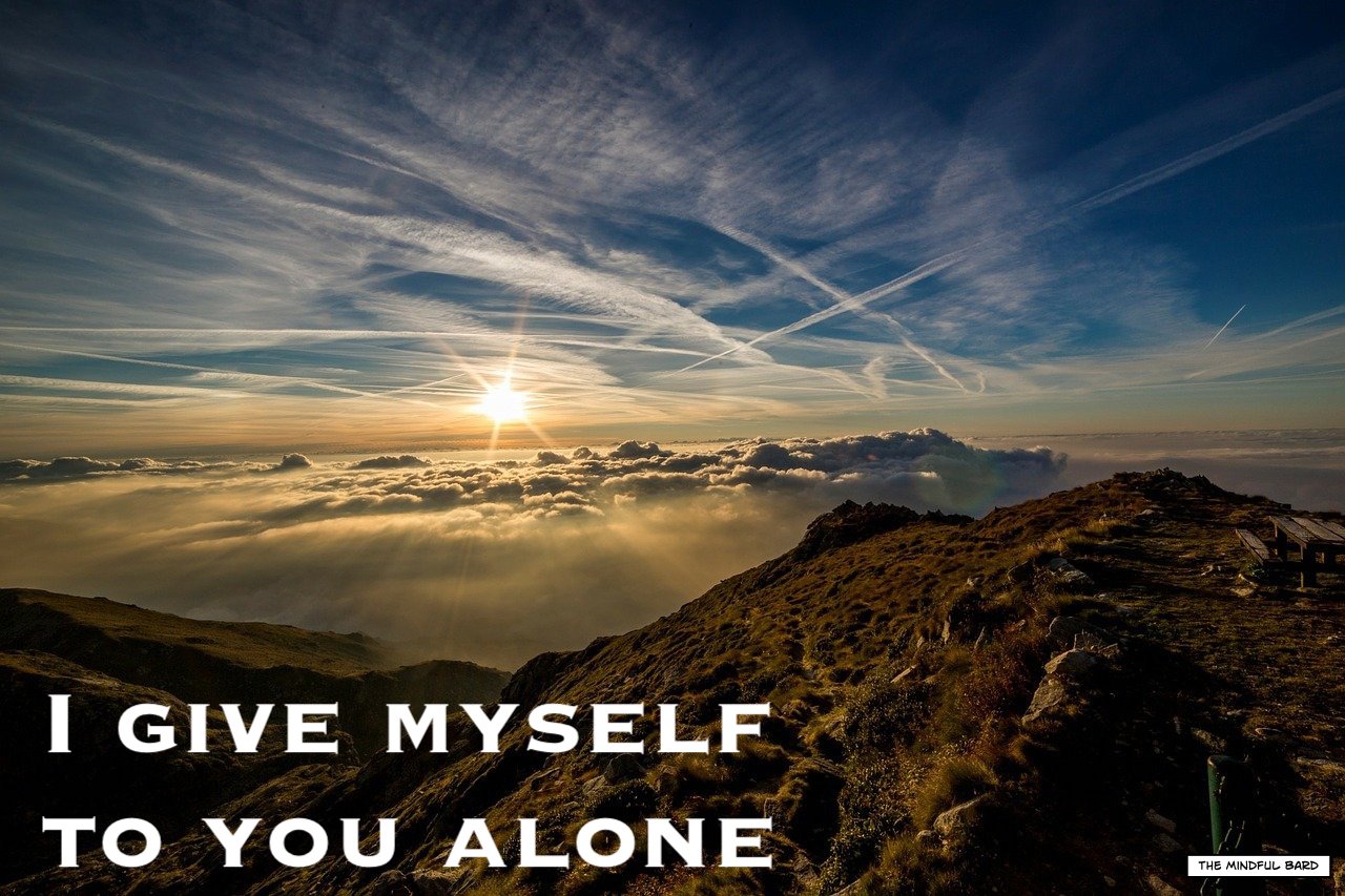 Deep, conscious breathing is among the simplest and most rewarding forms of meditation. Mantras help by giving your mind something to focus on so that it can escape its own chatter. The Mindful Bard breath mantras can be practised at any time of day, whether you’re actually meditating or even just waiting in line, trying to fall asleep, pausing while your friend answers their phone, or enjoying a beautiful sunset. Each pair of words or phrases is to be spoken inwardly while breathing in and out, usually the first on the in-breath and the second on the out-breath. But of course, how you do it is up to you. Be well.